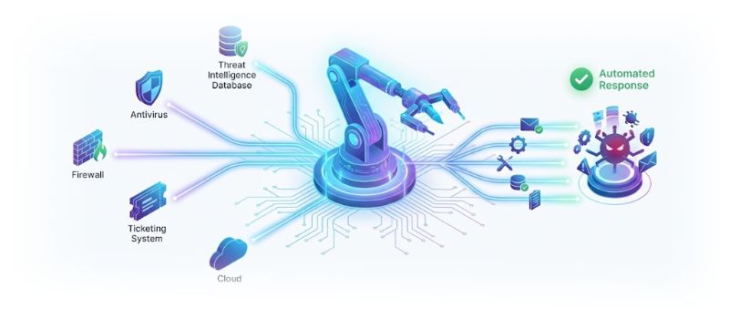 System integrujący narzędzia bezpieczeństwa, który automatyzuje reakcję na incydenty i orkiestruje procesy, przyspieszając obsługę zagrożeń przez zespoły IT.